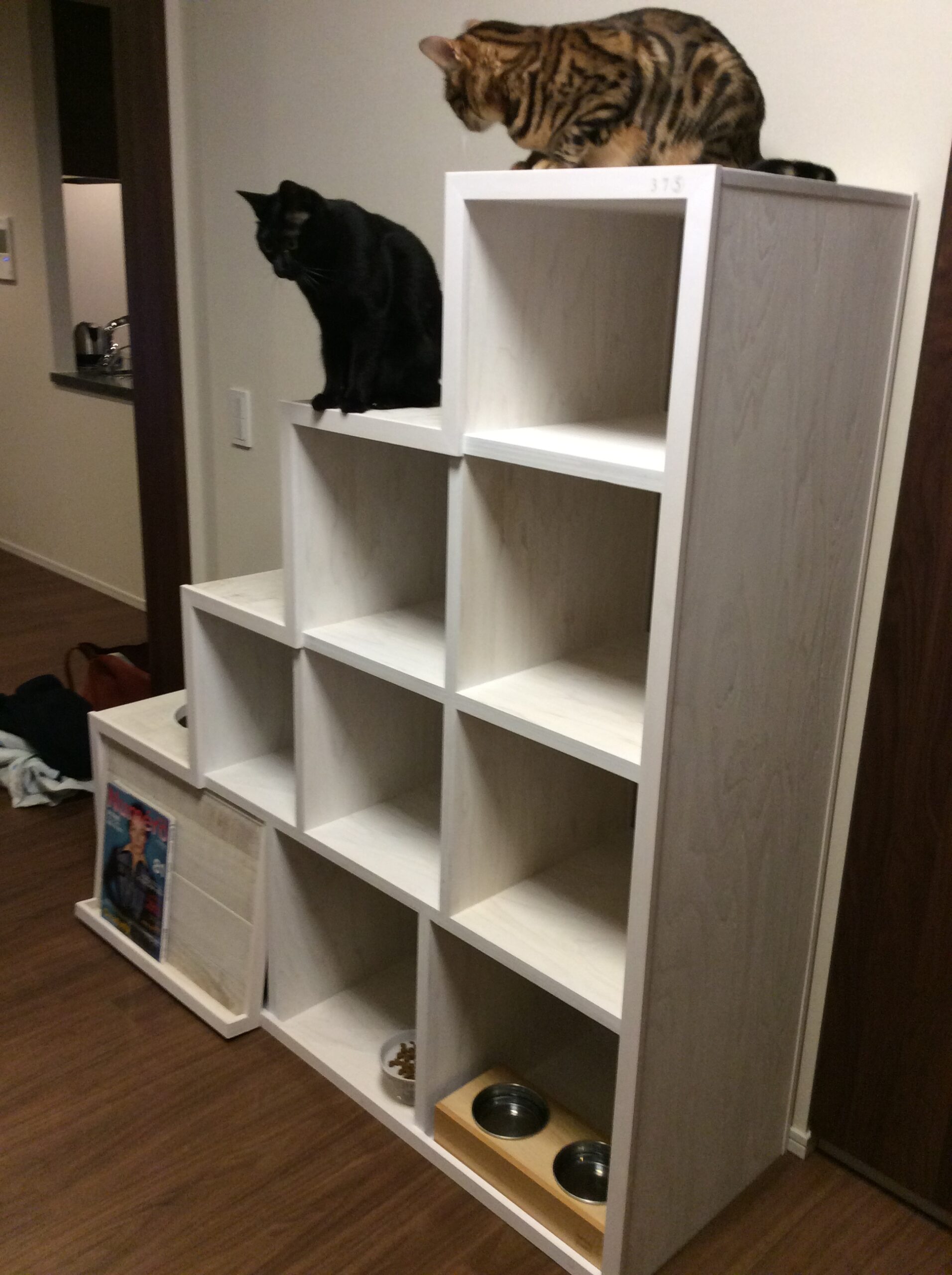 2匹のねこちゃんが暮らすマンションに、仲良く遊べて、トイレやフードトレイ、お世話グッズのおける