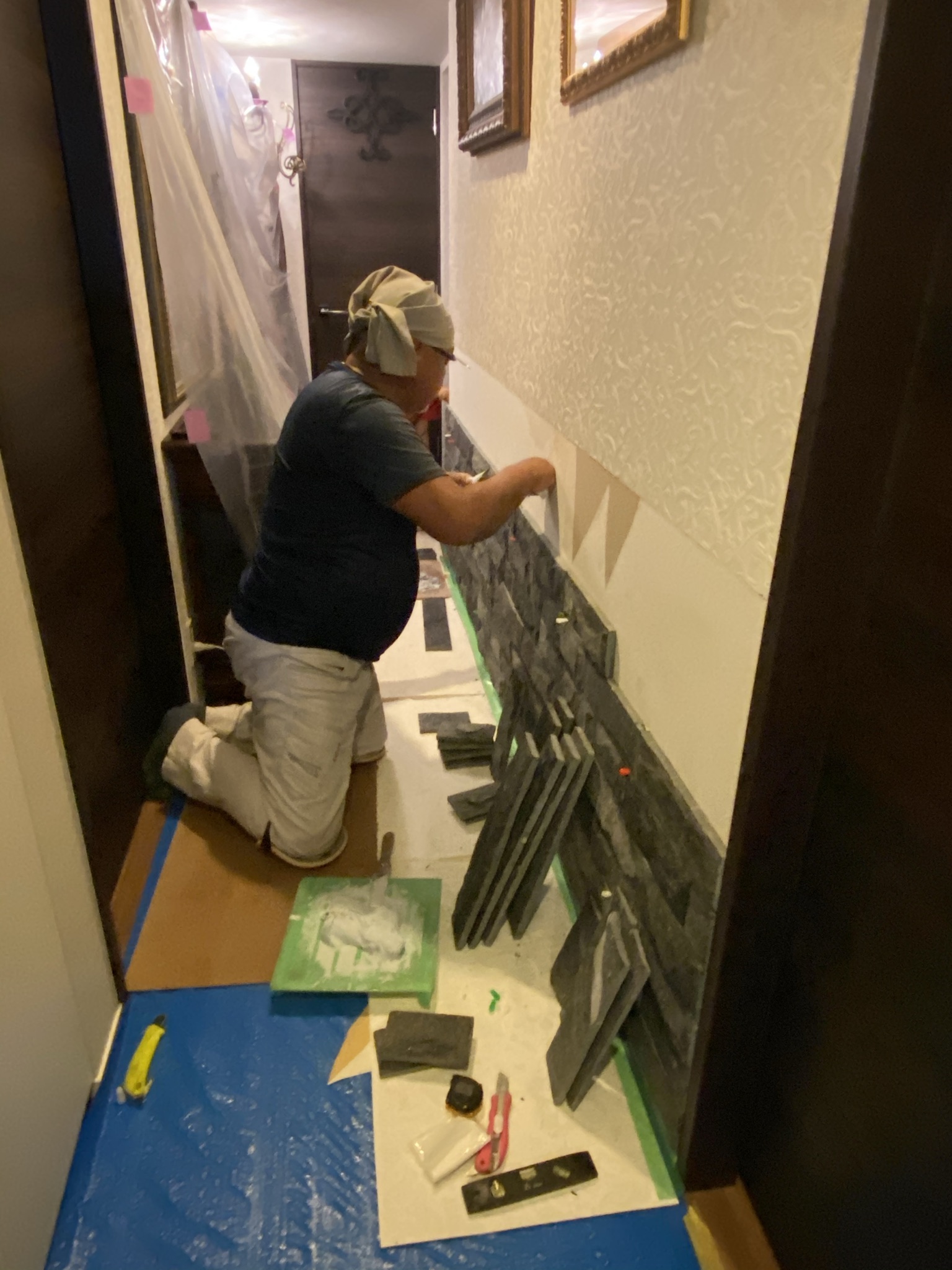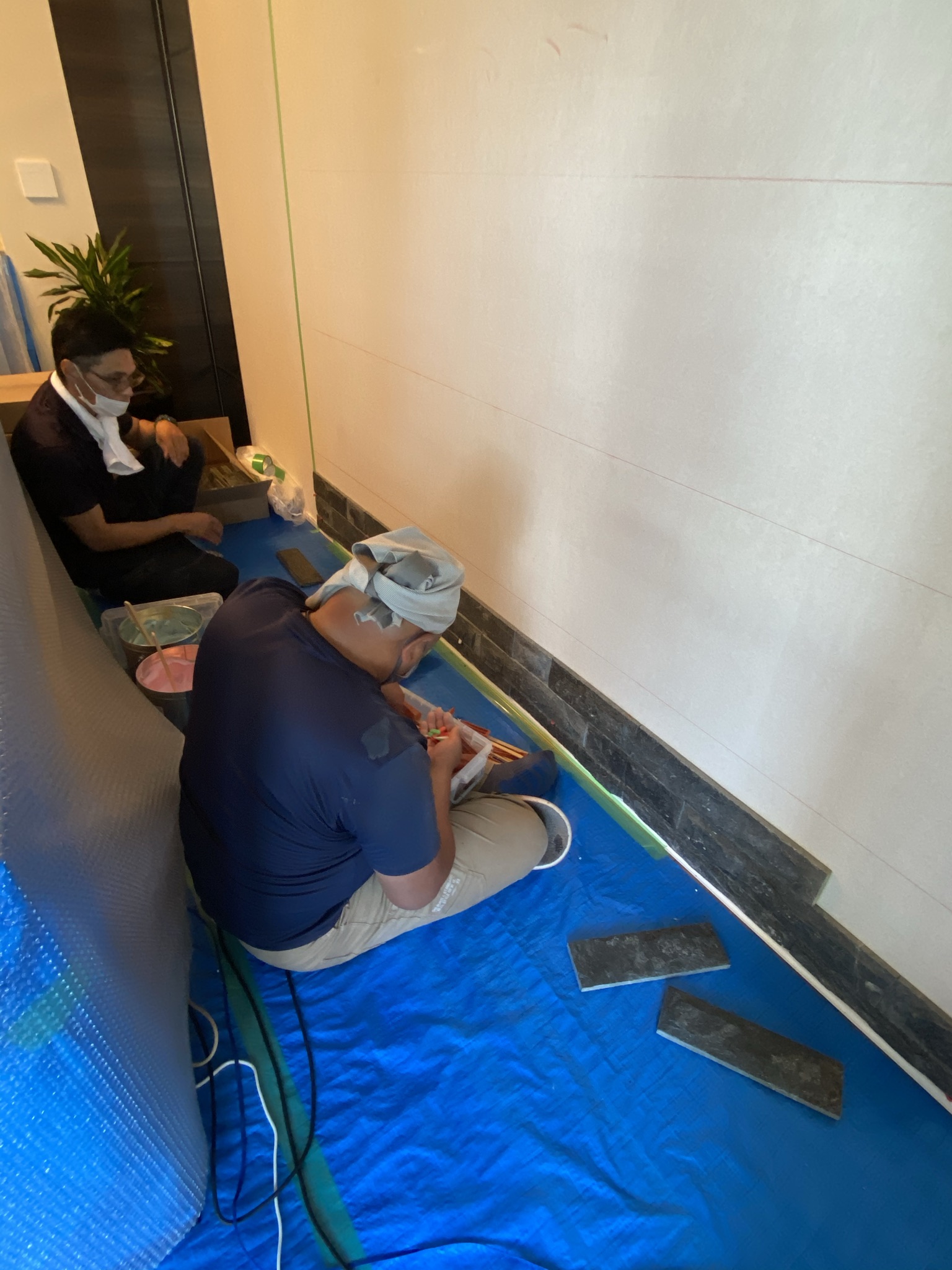 所沢マンション壁面石貼