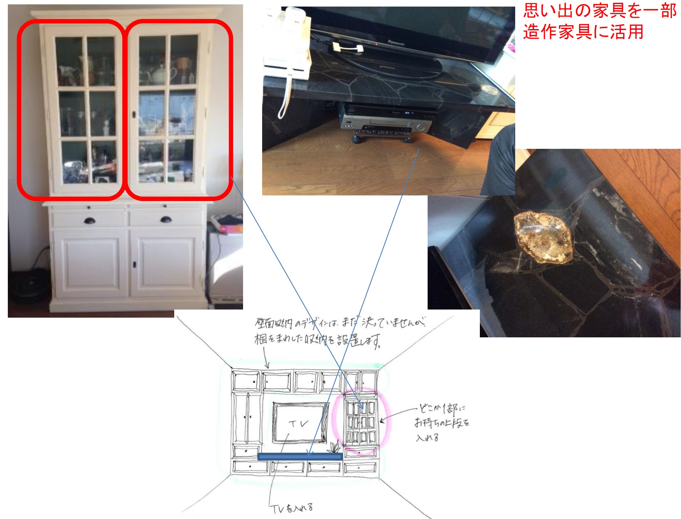新築マンションのご入居時に、海外生活で持ち帰った思い出の家具を加工し、