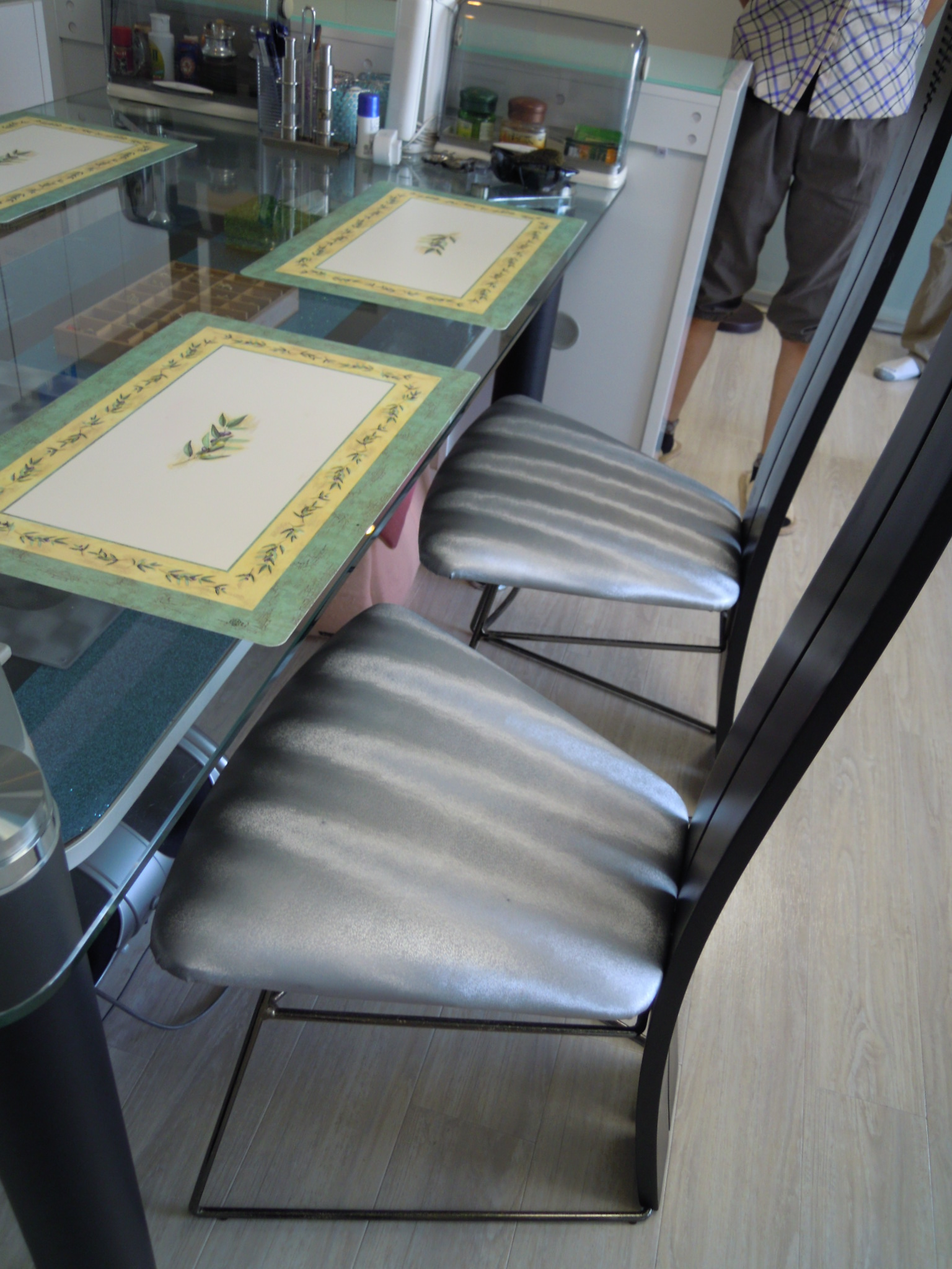 80年代から大切にされている椅子も、スタイリッシュな柄をご提案し張り替えました。